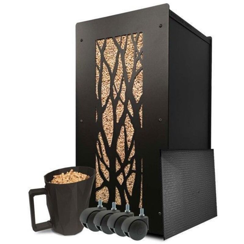 Oubliez le sac plastique adossé au mur ; cette box joue la carte du meuble design. Le verre fumé laisse deviner le niveau des granulés tout en masquant la poussière. Un simple coup d’œil et l’on sait s’il reste de quoi tenir la soirée.